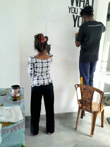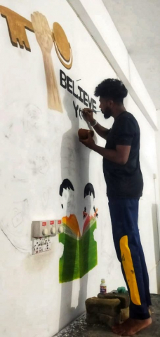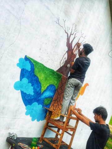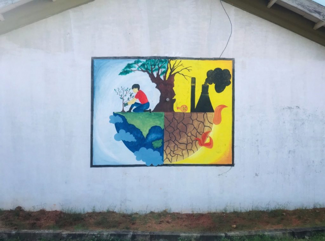 One painting in wall expressing stop food waste.