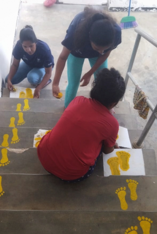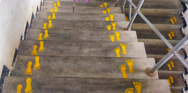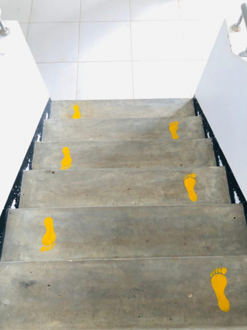 Designing footsteps to show up and down way in stair cases at canteen.