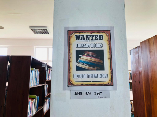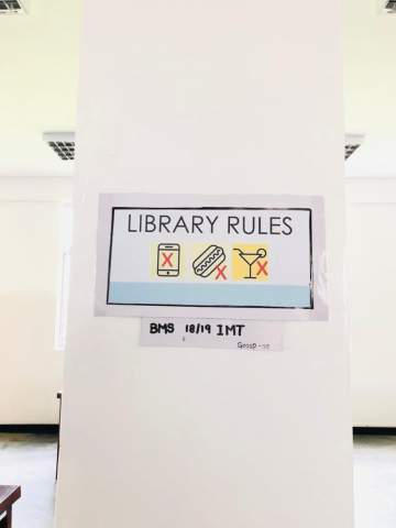 Ethical behaviour posters inside the library.